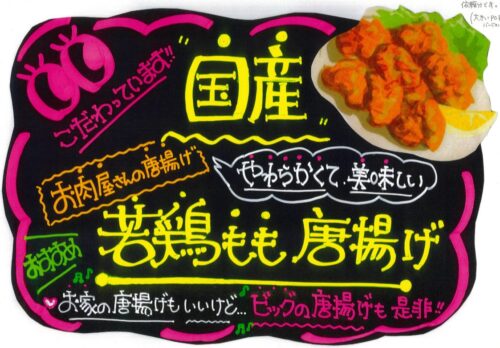 当店自慢のお肉屋さんの唐揚げは、やわらかくて、とっても美味しいとご好評を頂いております。
